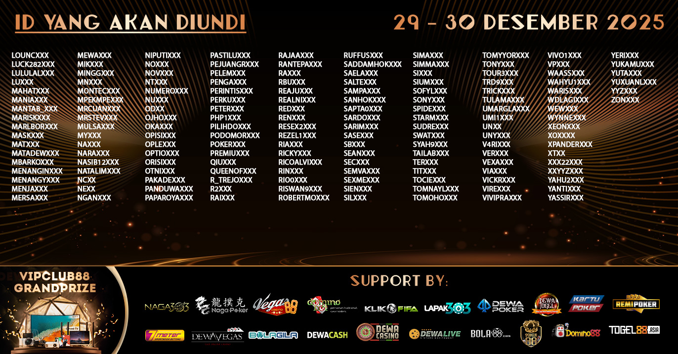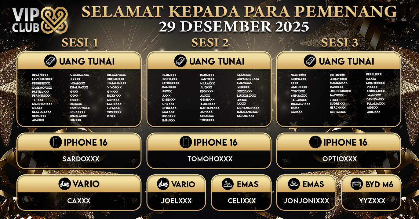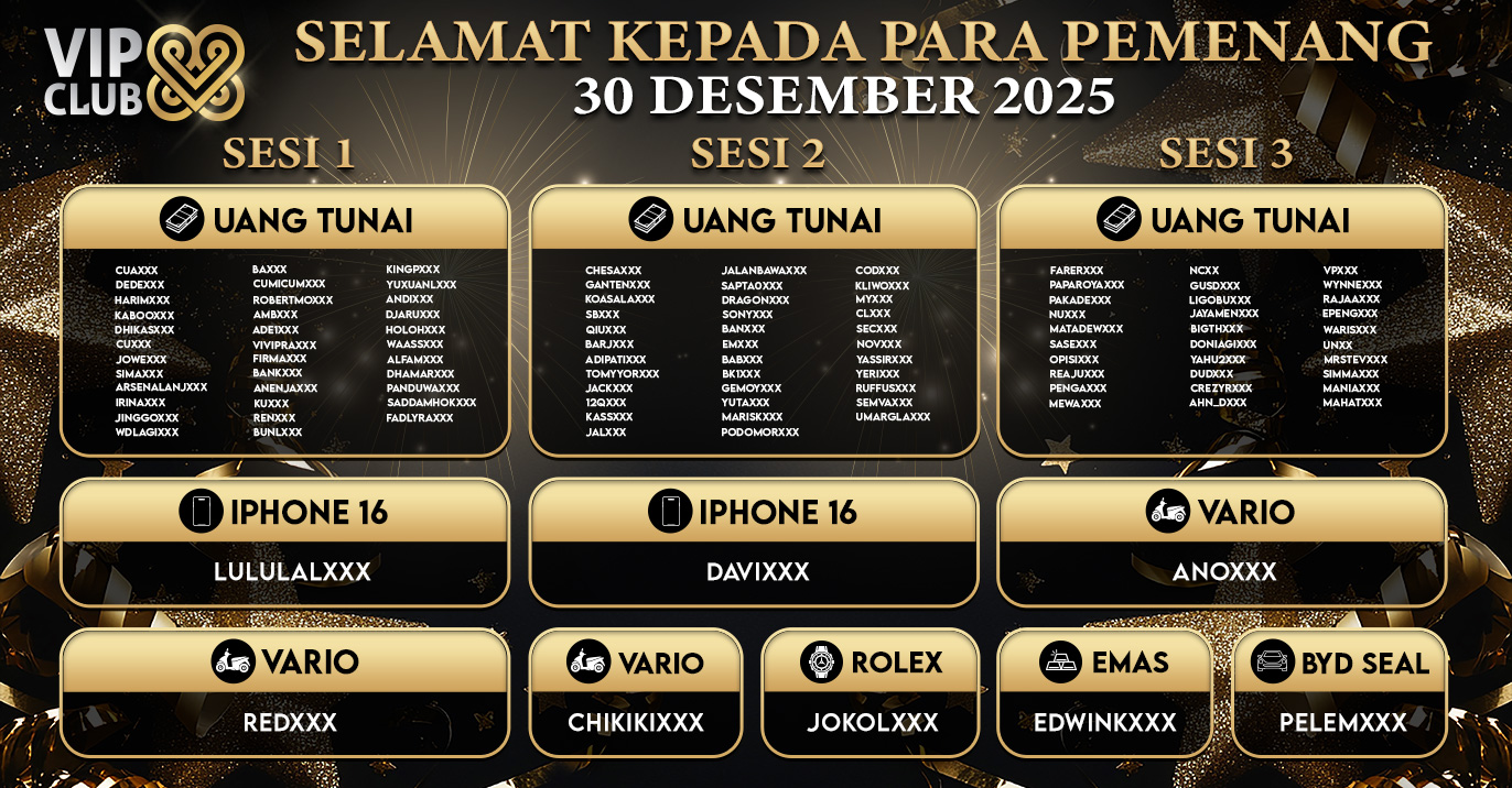 PEMENANG EVENT ANNIVERSARY VIPCLUB88 KE 9